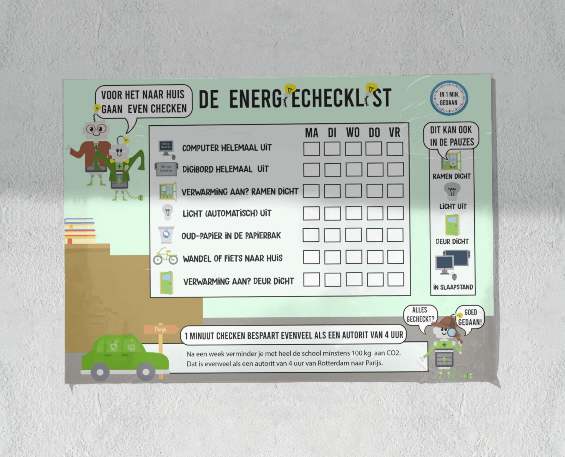 automatisme. Zo ook voor leraren op een basisschool. Hoe kan dat anders? In mijn onderzoek heb ik op basis van gedragskennis een interventie ontworpen om het gedrag van leraren te beïnvloeden. Met als doel: energiebesparing. De interventie bestaat uit een checklist gemaakt voor leraar en leerling. Want wat blijkt? De leerlingen spelen een essentiële rol bij de gedragsverandering van de leraren.